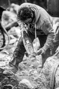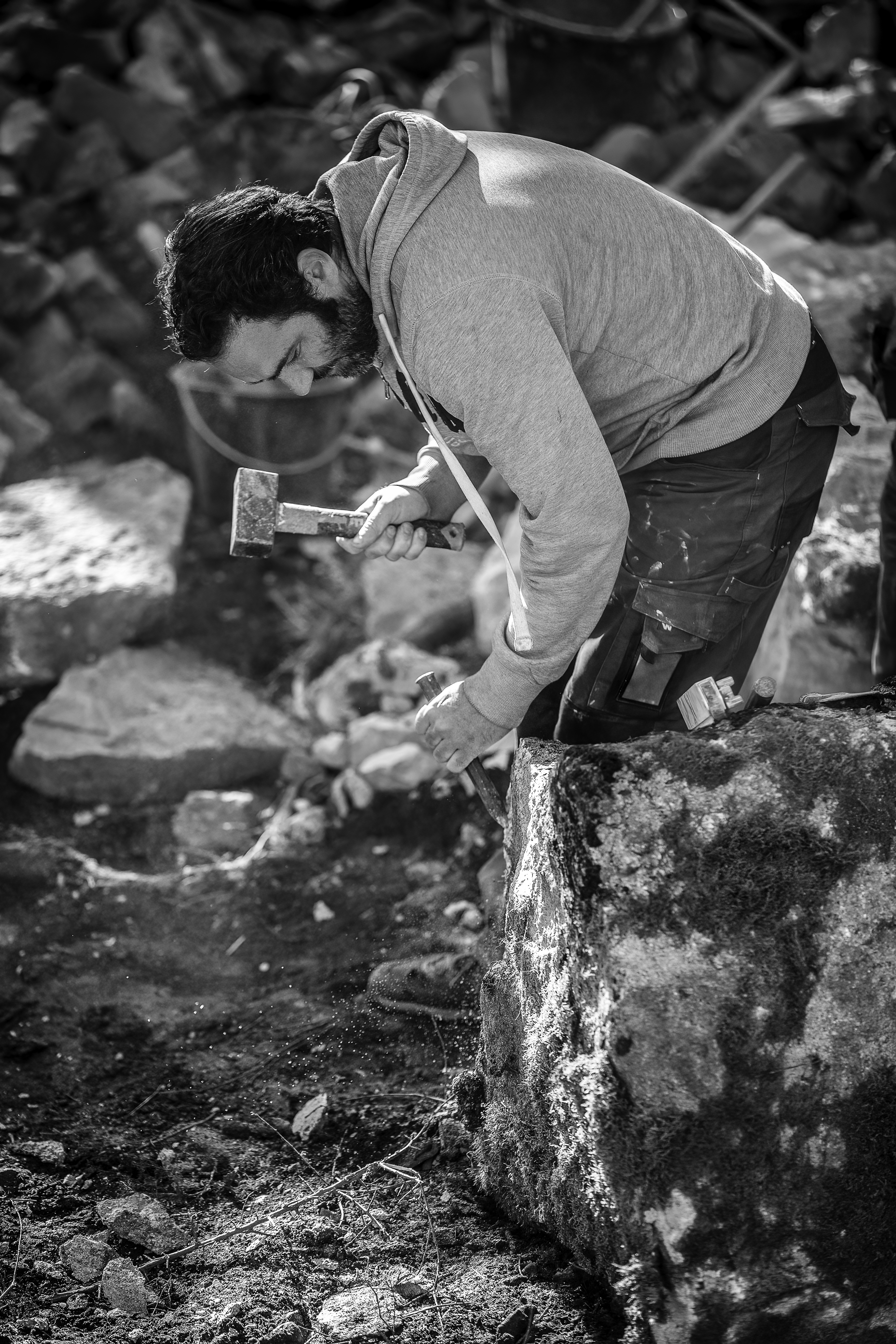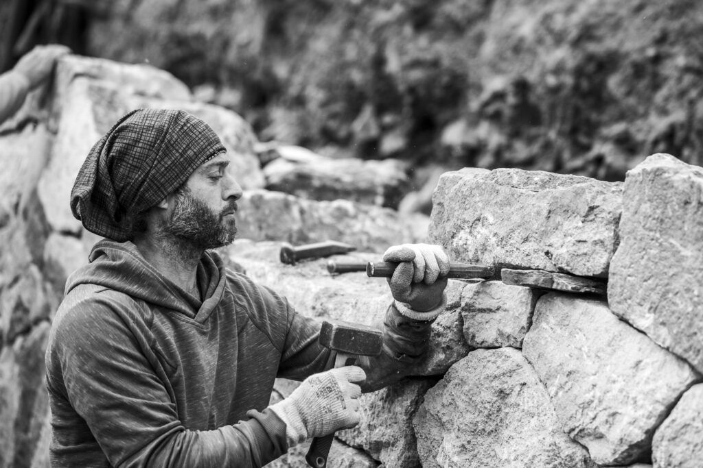 François Clergue est aujourd’hui artisan spécialisé en pierre sèche dans l’Hérault, sur le territoire du parc naturel régional du Haut-Languedoc. Il n’était au départ pas sensibilisé à la pierre sèche, mais après s’être installé à Vialas en 2008, il a rencontré des bâtisseurs cévenols et a décidé de se lancer dans la formation expérimentale du Certificat de qualification professionnelle (CQP) « Ouvrier professionnel en pierre sèche » menée par ABPS en 2009. Ce CQP lui a permis de trouver un emploi d’ouvrier qualifié dans une entreprise spécialisée. Il a ensuite adhéré à l’association ABPS et est devenu membre de la commission « formation et qualification ». Il a participé à la création du référentiel pour le niveau supérieur, le CQP « Compagnon professionnel en pierre sèche », qu’il a passé en 2015 avant de créer sa propre entreprise l’année suivante. Aujourd’hui, il est artisan, formateur ABPS et membre de jury pour les CQP.